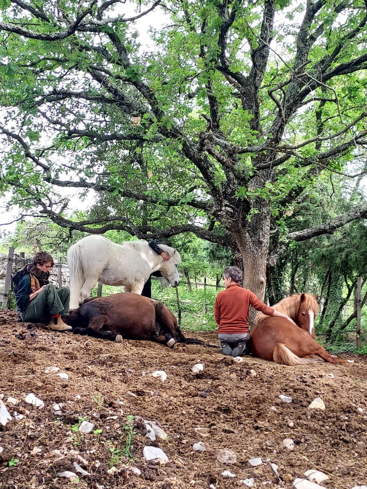 Durant les stages que je propose avec les chevaux, je ne vous apprends pas une méthode où une technique pour que cet être vous donne son attention. Bien au contraire, c'est bien en dehors de son espace que se joue la première rencontre. Ils savent que vous arrivez, ils nous ressentent bien au-delà de ce que nous imaginons. Ce qui me passionne, c'est de permettre à chaque humain qui le souhaite, de vivre une rencontre